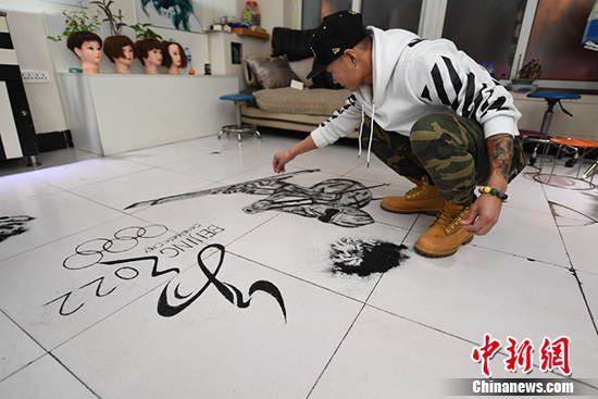 厉害了!吉林美发师用碎头发绘画 为冬奥会助威